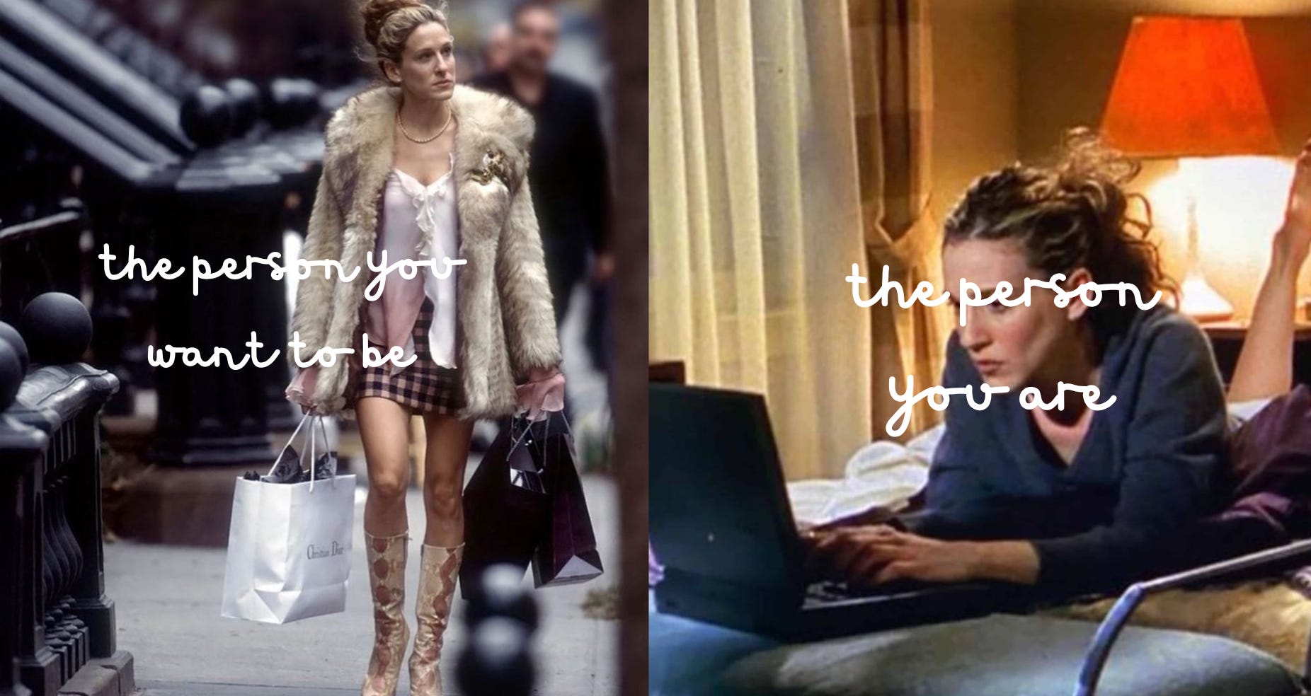 I think a lot of us are doing this. We are flooded with images of other people we would kind of like to be, every time we open social media. We’re not buying for our lives, we’re buying for our fantasies. Even if that fantasy is being someone who can withstand denim. And then we’re surprised when getting dressed feels strangely stressful.